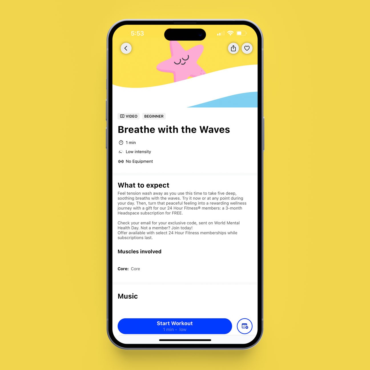 In August 2022, the everyday mindfulness and meditation app Headspace partnered with 24 Hour Fitness gym to provide a promotional 3 months free membership to the app for all gym members to promote the company's commitment to mental health and well being. The goal with the Headspace partnership was to further promote the importance of mental health to help gym members build life-changing habits in order to stress less, sleep better, get moving, and find more focus and joy. With their mission statement to "create a healthier, happier world" the free membership offered a new value proposition to drive engagement to both sign-ups for the app, and fitness club memberships for current and prospective guests.